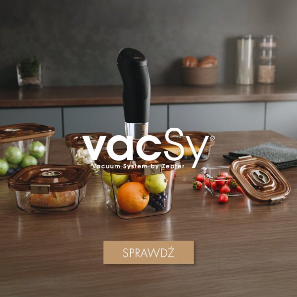VacSy® to uniwersalny system do próżniowego przechowywania żywności, dzięki któremu produkty zachowują swój smak i pozostają świeże nawet do 5 razy dłużej niż w przypadku standardowych warunków chłodniczych! Pojemniki i torebki VacSy® mogą być używane do przechowywania świeżych lub uprzednio ugotowanych potraw i składników. To ekonomiczne i ekologiczne rozwiązanie, które pomoże ograniczyć także marnowanie żywności.
